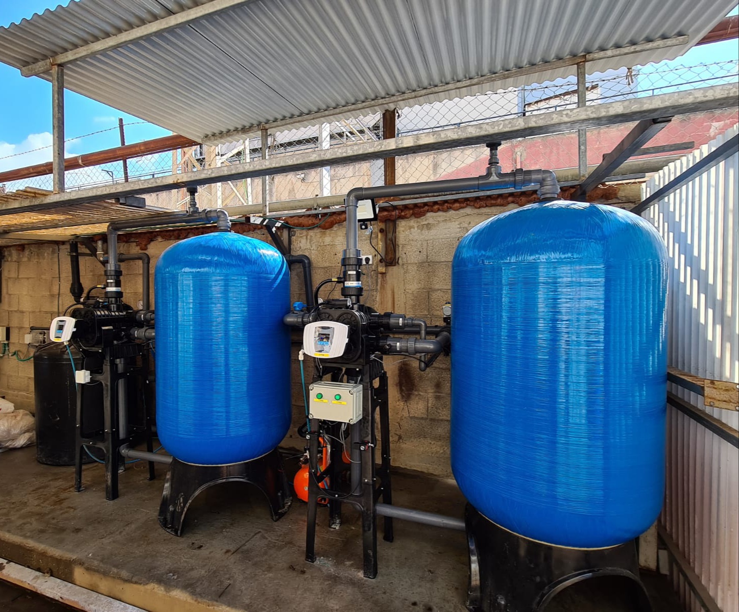 לאחר מכן, המים נכנסים למסנן פחם אשר מסלק את הכלור.